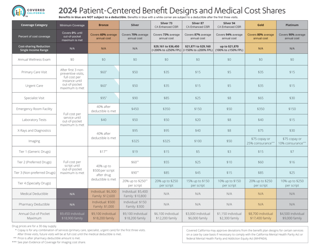 Covered California offers a range of health insurance plan options to cater to the diverse needs and preferences of individuals and families. These options vary in terms of coverage levels, provider networks, and costs. Remember that no matter which metal level you choose, under Covered California, all plans have the same maximum out-of-pocket limits. These limits protect you financially, especially if you need a lot of medical care.
